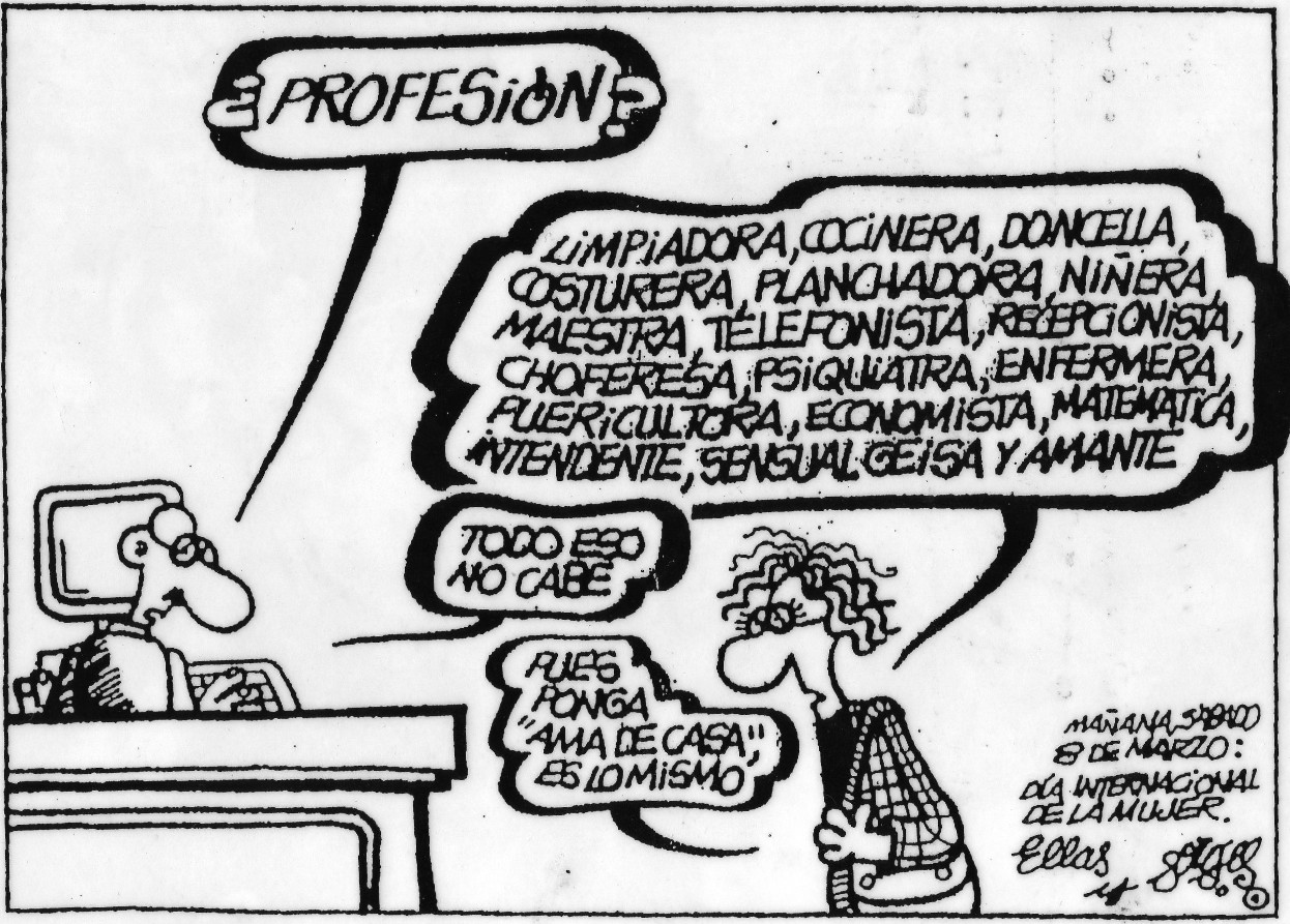 A mí siempre me gusta hacer alusión a la definición de consultor político que leí un día en una entrevista de Rafa Rubio, y que hacía referencia al homenaje de Forges a la mujer un día 8 de marzo: Le preguntaba el funcionario de turno: “¿Profesión?”. Ella respondía rápidamente: “Limpiadora, Cocinera, Doncella, Costurera, Planchadora, Niñera, Maestra, Telefonista, Recepcionista, Choferesa, Psiquiatra, Enfermera, Puericultora, Economista, Matemática, Intendente, Sensual Geisha y Amante”. A lo que el funcionario respondía: “Todo eso no me cabe”. “Pues ponga ama de casa. Es lo mismo”. Dijo la señora.